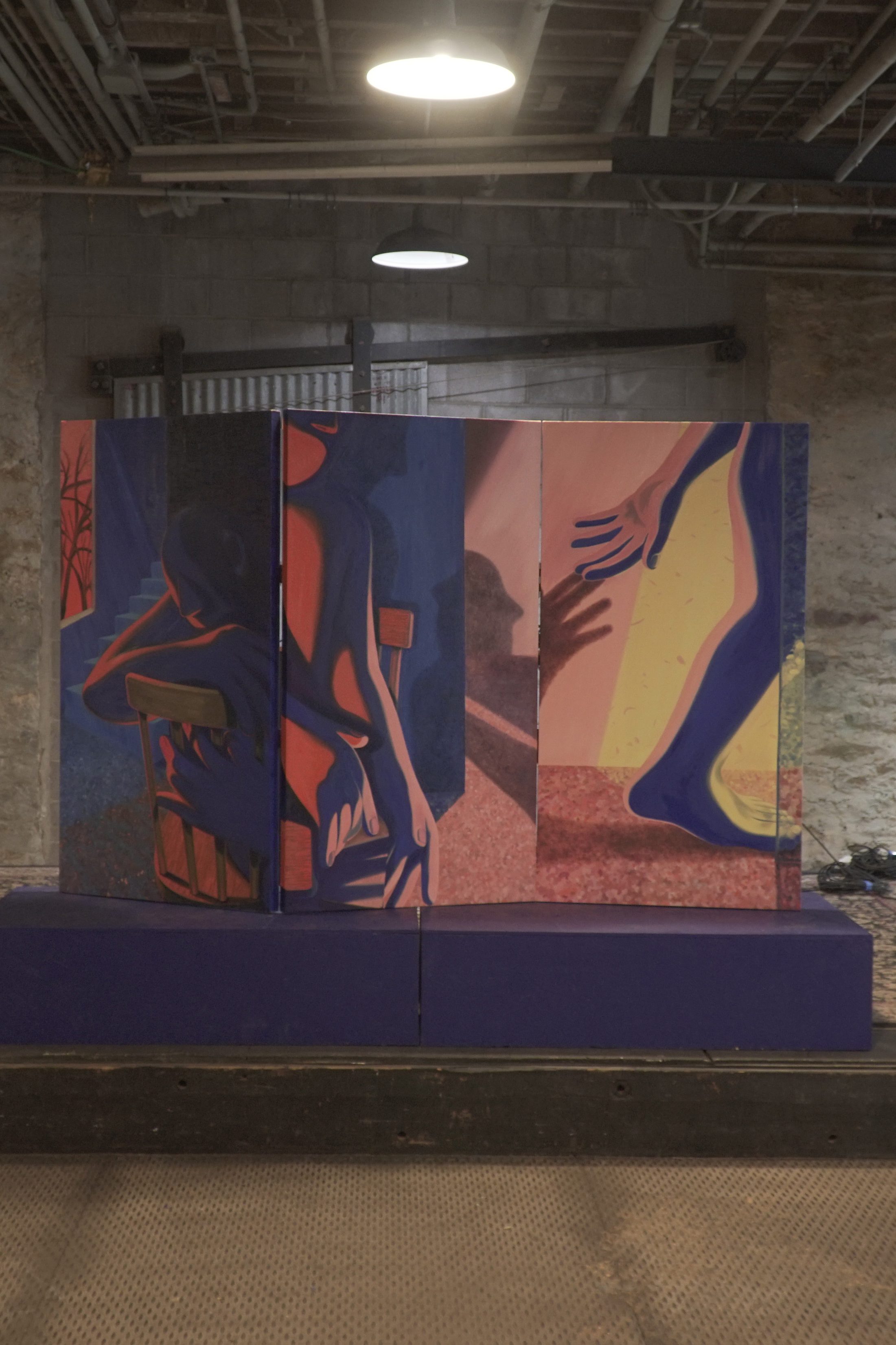 In her series of three oil paintings, Heejo Kim explores the need for intimacy and relationships in the development of an individual. Through the contrast of cobalt blue and cadmium red, she expresses how we draw the personal courage to advance into the cold unknown by drawing warmth from the relationships we keep along the way.