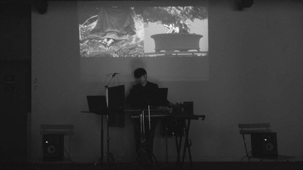 This work attempts to illustrate “Man, The Unknown (1935)” by Alexis Carrel and scenes within “The Temple of the Golden Pavilion (1956)” by Yukio Mishima. Through the confession of an old monk as the storyline, constructing an imagination of the two masterpieces – the protagonist seeks self-destruction, exploring the remake of man and the sublimity of beauty. The work consists of two parts: video projection and audio, interacting with a live percussion performance. Music would contain some improvisation with a partial open score between the video and live performance, corresponding to the theme of the unknown of regression.