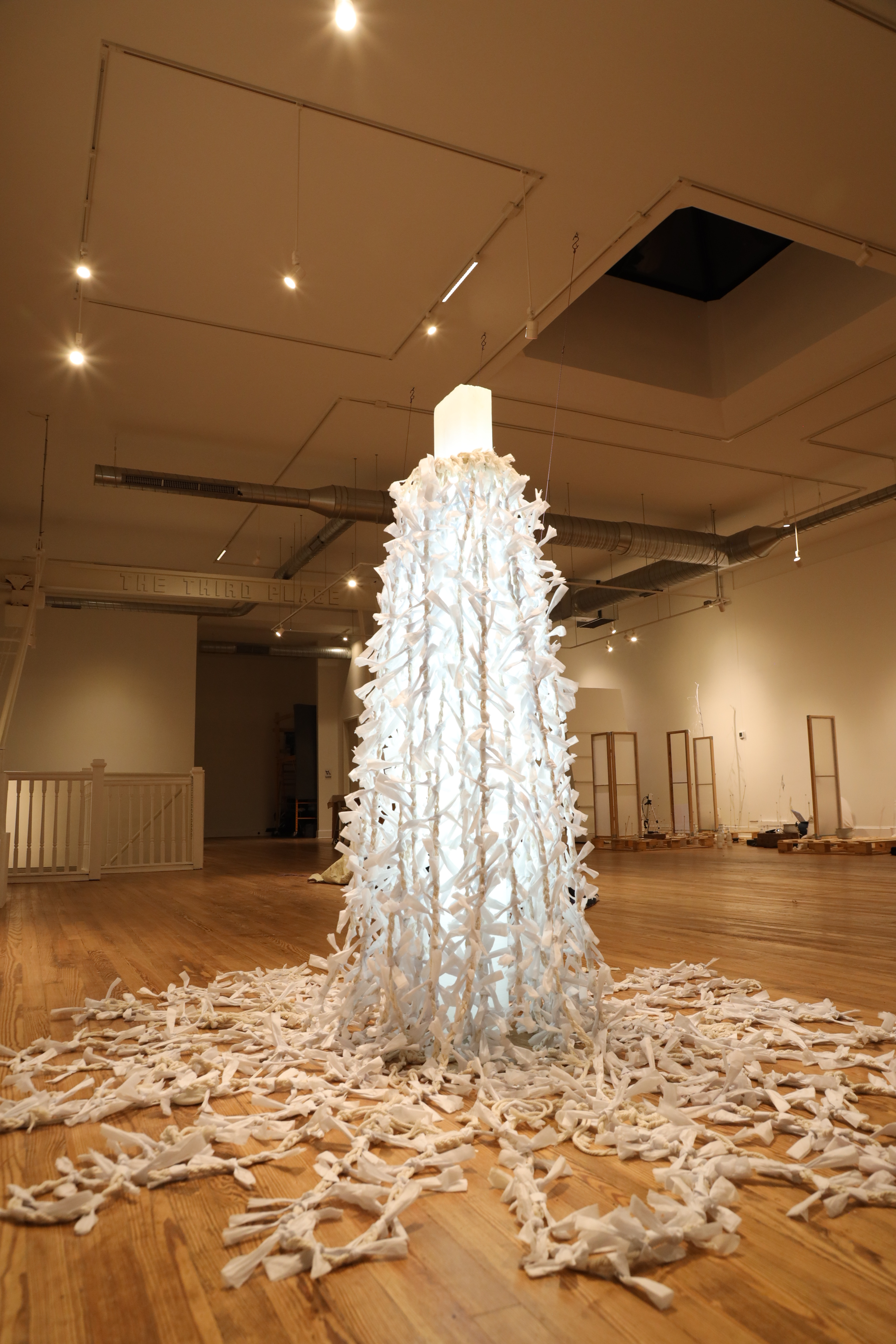 YooRa’s installation evokes the form of ancient relics hidden deep beneath the sea, exploring layers of memory and time. Inspired by Korean and Chinese wish papers, the work contains folded notes that hold wishes, dreams, and forgotten stories—especially the voices of women. Within the egg-shaped sculpture rests a poem dedicated to the sea.