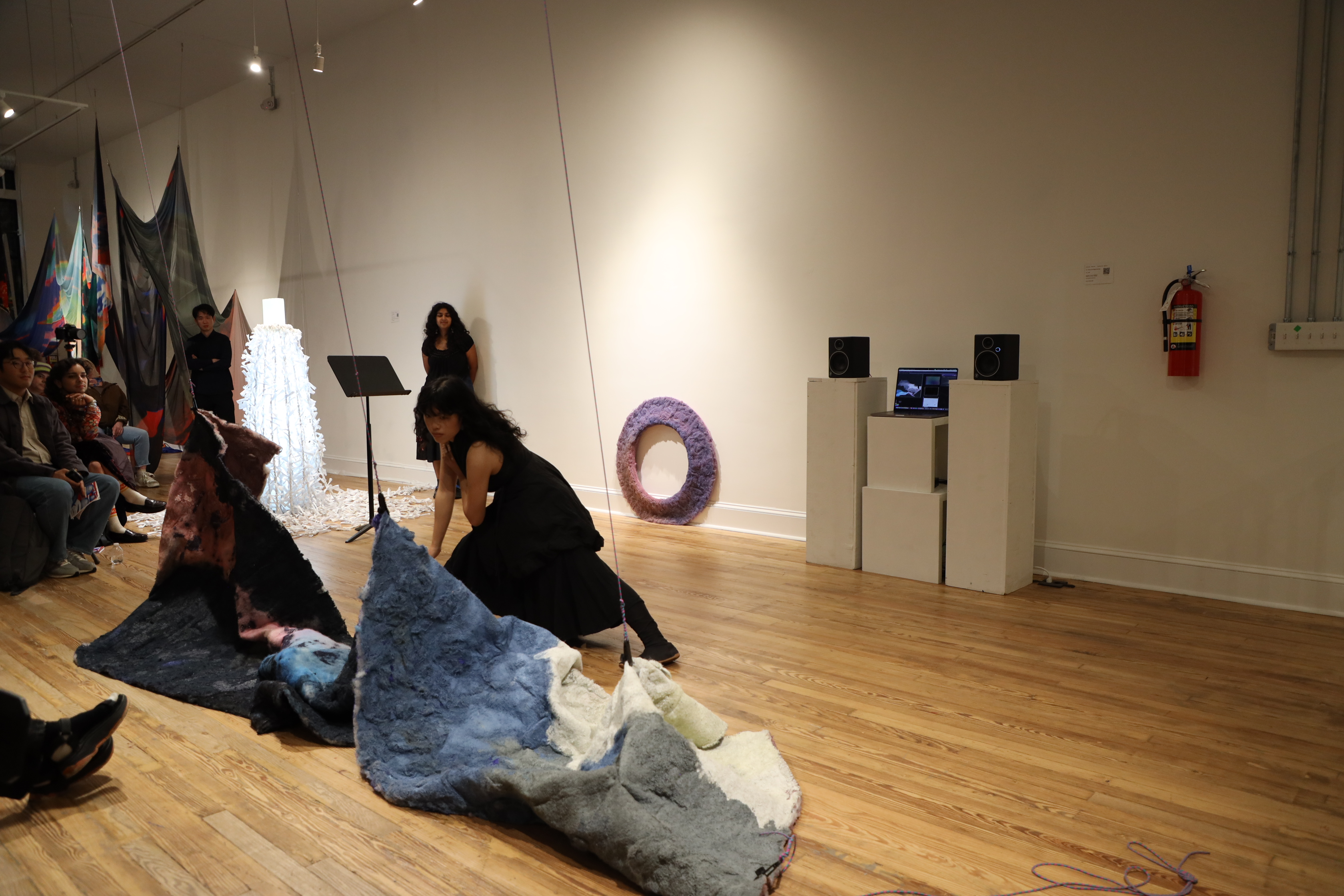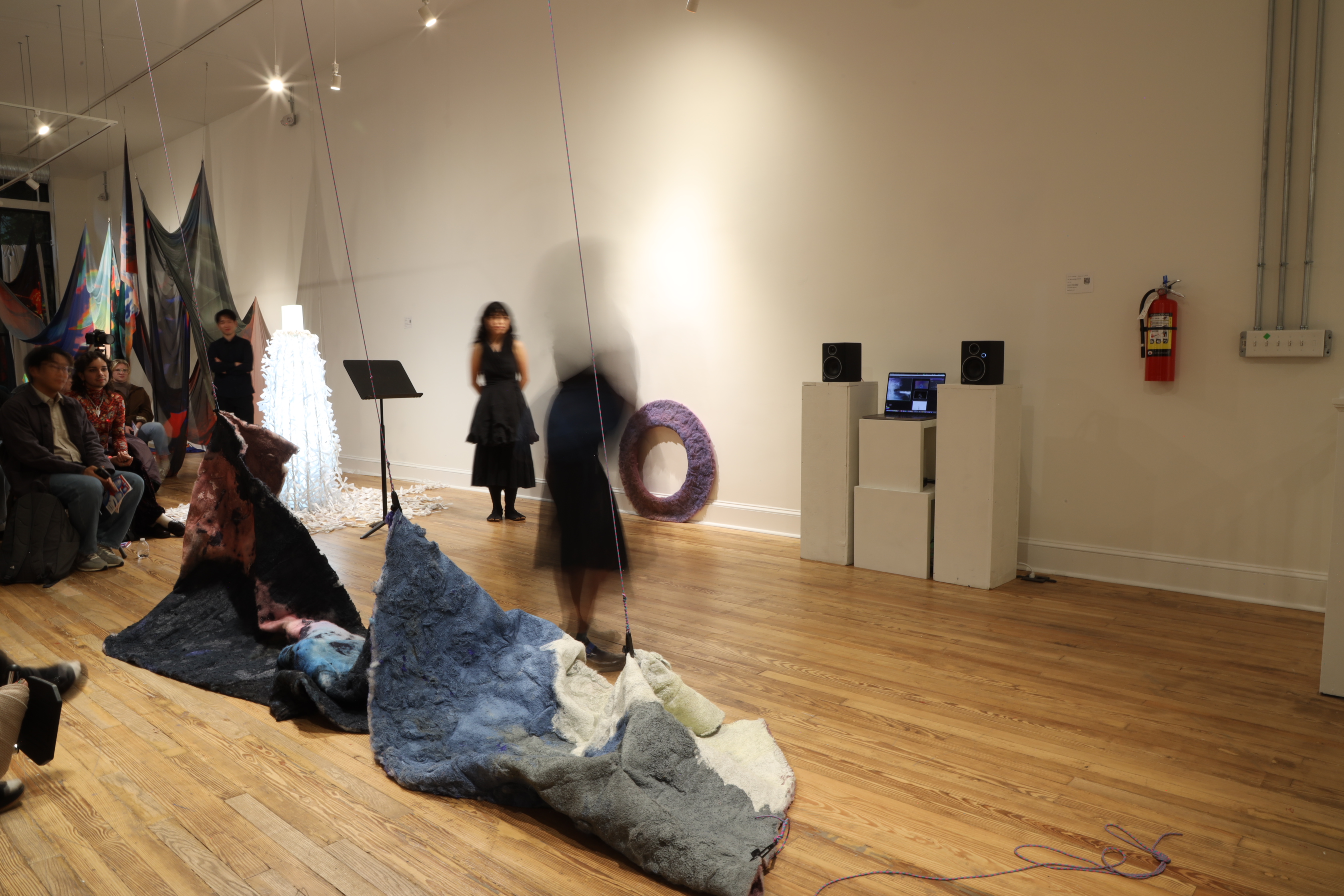 As the audience moves through space, the AI system interprets their position to generate two distinct musical environments: the outer region evokes the spectral turbulence of a storm, while the central area unfolds into a state of calm and balance—the stillness within motion.