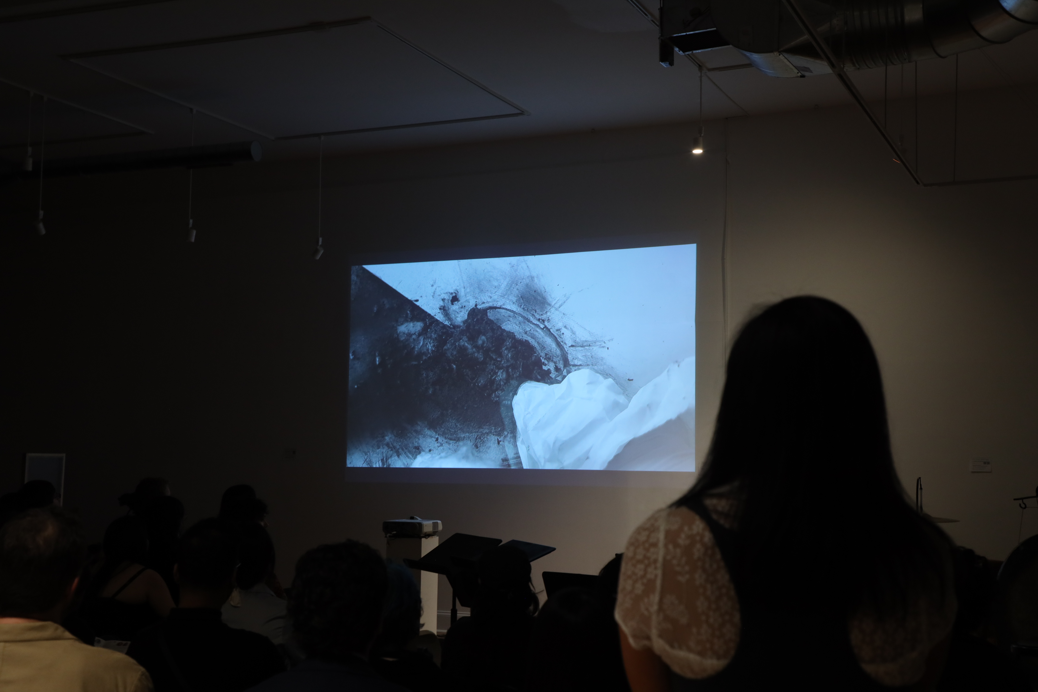 Zhishu Chang and Aura Wang created a video work tracing the evolution of an eye from dot to line, line to plane, and plane to space. The eye symbolizes awareness and the unfolding of dimensional perception. The work reflects on drawing and painting as processes of transformation rather than depiction. The dot becomes spatial consciousness, opening the surface toward movement and rhythm. Engaging with modern discourses on materiality, the video situates drawing as an active field where boundaries between mediums dissolve. Through Zhishu’s digital sound, visual and sonic forms evolve in tandem, revealing drawing as an unfolding awareness in time and space.